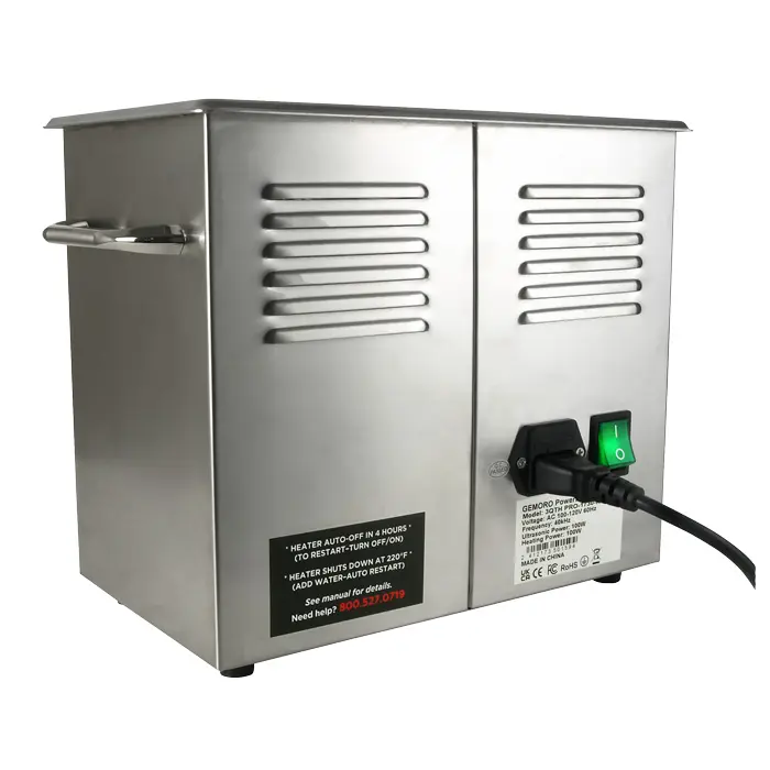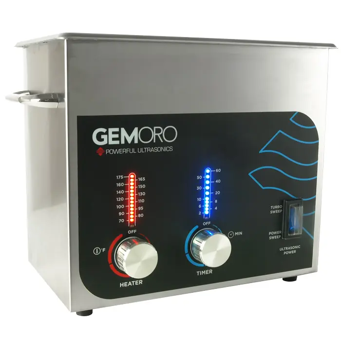You’re in even greater control with the sleek new NEXT-GEN 2 LED bar graph indicators and variable control knobs. Boasting the quietest ultrasonics in their class, GEMORO’s proprietary sound dampening insulation cuts the inherently loud ultrasonic sound in half! Featuring two intense cleaning powers at the flip of a switch. Turbo Sweep Technology™ for the toughest jobs and Power Sweep Technology™ for more delicate jewelry. Simply put, GEMORO cleans jewelry faster and more effectively than ever before. The exclusive Instantaneous Digital Degassing (IDD) speeds up the cleaning process and Automatic Load Self-Tuning (ALST) constantly adjusts to maximum cleaning output and load voltage to maintain consistent cavitation and cleaning regardless of load and liquid levels. The thermostatically controlled VARI-TEMP 2™ silicon heaters last longer and heat up the tank in half the time. Change the cleaning time from 0-60 minutes with its fully adjustable timer, no problem.