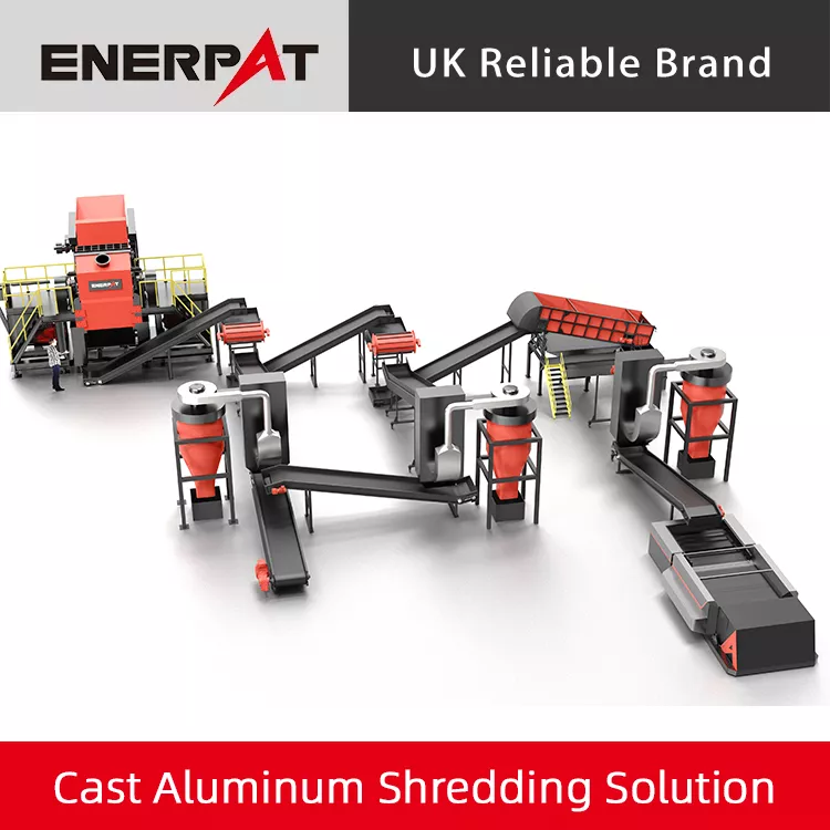 The ENERPAT cast aluminum shredding line uses a modular layout that blends shredding, mag separation, and an ECS in one package. It delivers fast processing and smart sorting of scrap castings. The line runs with a high level of automation and user friendly controls, boosting aluminum recovery, cutting pollution, and driving genuine circular use of resources.