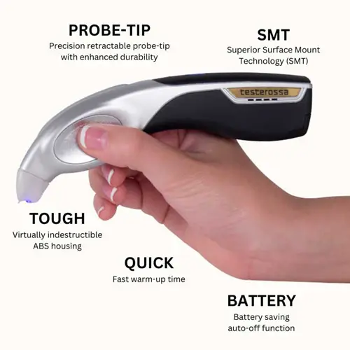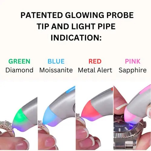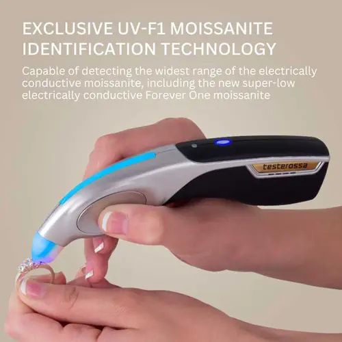 The ultimate tester for diamond fraud protection! The GEMORO Testerossa features EXCLUSIVE UV-F1 MOISSANITE IDENTIFICATION TECHNOLOGY™ capable of detecting the widest range of the electrically conductive moissanite, including super-low electrically conductive Forever One moissanite.