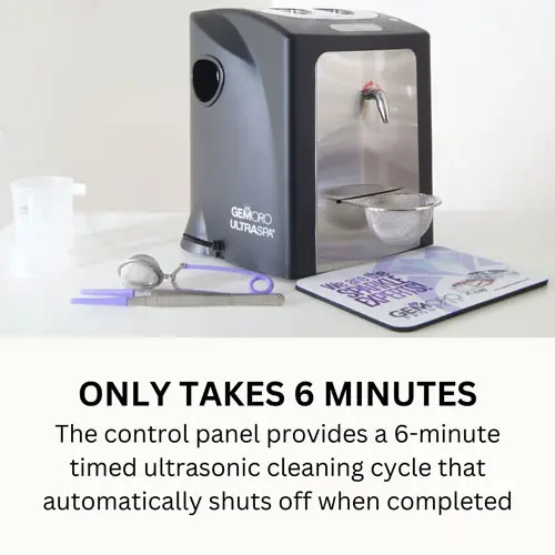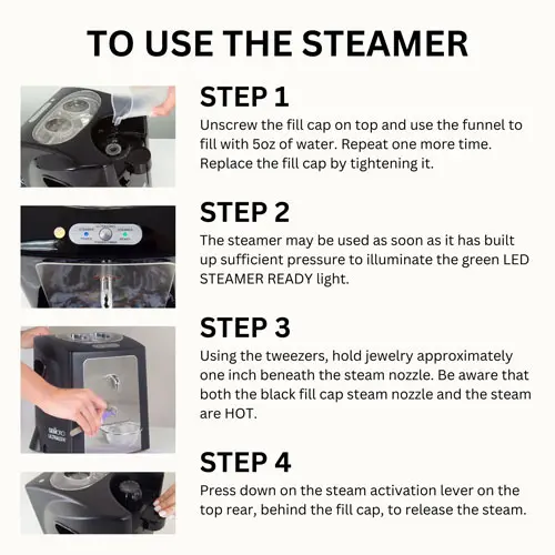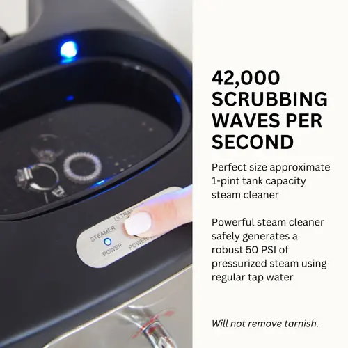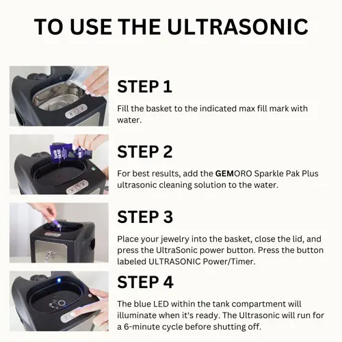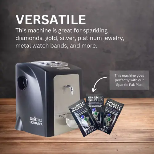 The ingenious UltraSpa is a professional quality machine that provides ultimate cleaning results for sparkling diamonds, gold, silver, platinum jewelry, metal watch bands, and more. The UltraSpa has both powerful ultrasonic cleaning and high-pressure steam cleaning in a single appliance. With a two-stage cleaning process, scrub dirt and grime with intense ultrasonic sound waves, and then with the steamer blast away hidden dirt and the remaining residue from all hard-to-reach areas with amazing results like no other jewelry cleaner, period. Perfect for the home or jewelry store!