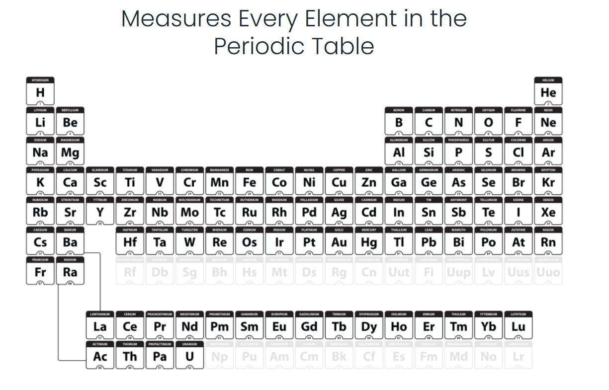 The Z-903 accomplishes what no other portable analyzer has done. It’s a handheld analyzer that measures every element in the periodic table of the elements – from H to U.